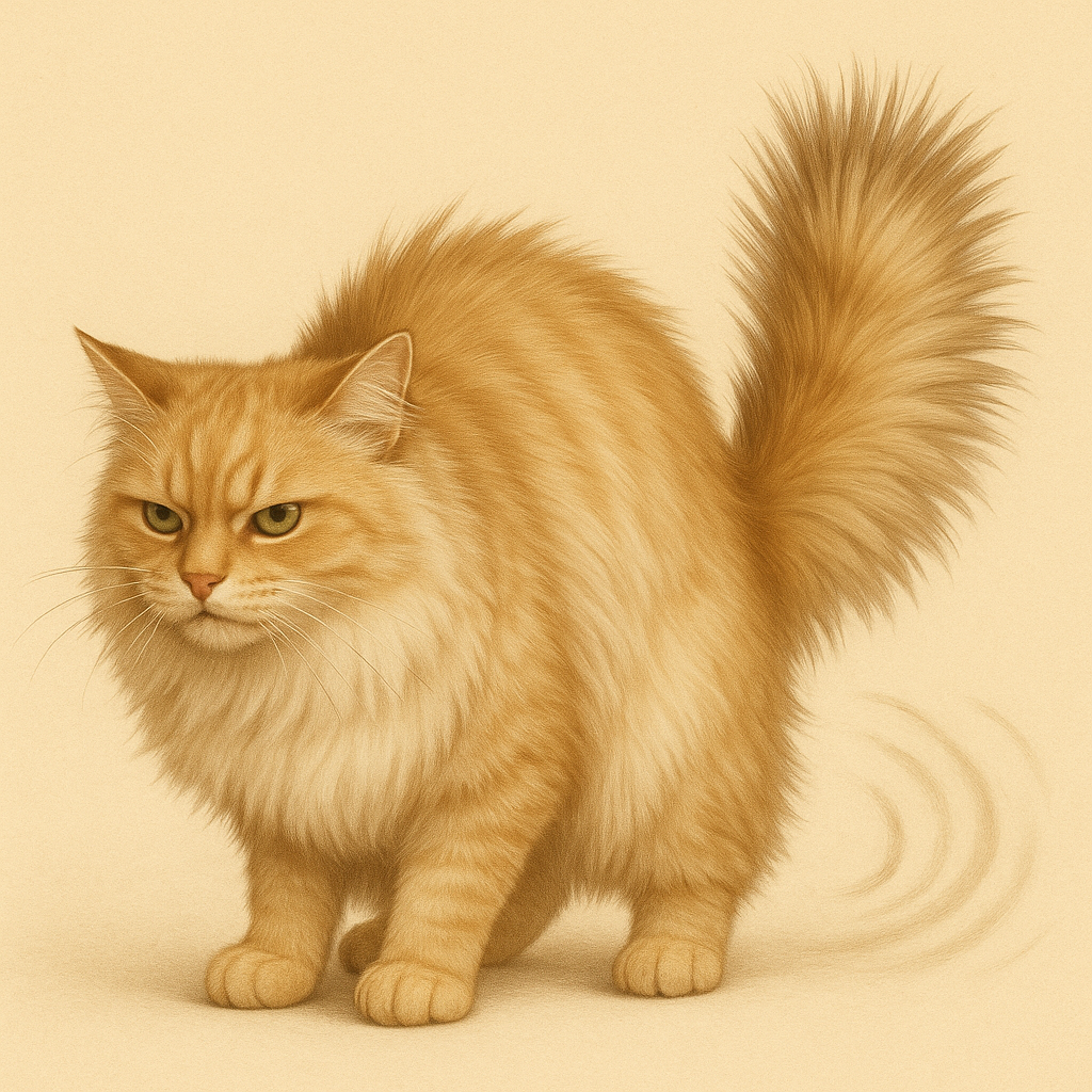 4. 猫のしっぽの毛が逆立って、太くなっている時:怒り・恐怖・戦闘準備のサイン